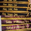 Tulisan pada selempang premium biasanya menggunakan teknik bordir komputer atau sablon berkualitas tinggi, sehingga tulisan terlihat rapi, simetris, dan tidak mudah luntur atau rusak. -