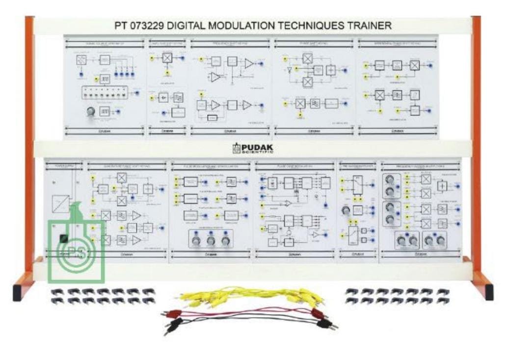 Digital Modulation Techniques Trainer adalah perangkat pelatihan berbasis modul panel yang digunakan untuk mempelajari dan mempraktikkan prinsip dasar hingga lanjutan dari teknik modulasi digital. Alat ini sangat bermanfaat dalam proses pembelajaran di laboratorium elektronika komunikasi, karena menyediakan media interaktif dan praktis untuk memahami bagaimana suatu sinyal informasi dimodulasikan secara digital dan ditransmisikan dari pemancar ke penerima.